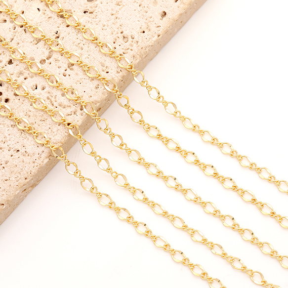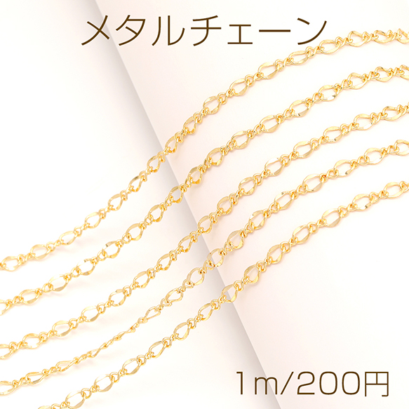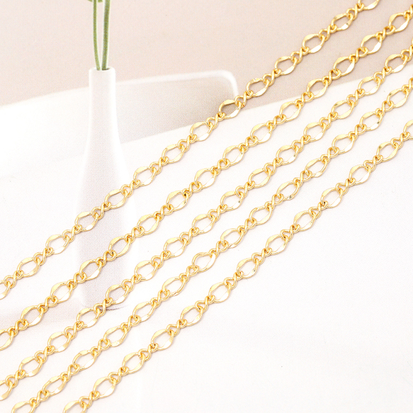 メタルチェーン ペタルチェーン ネックレスチェーン アクセサリーチェーン 色落ちしにくい 銅製 18Kゴールドメッキ(長さ1m)