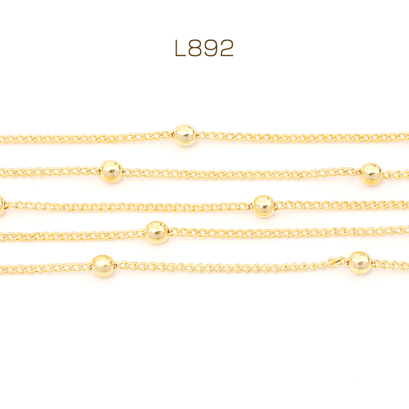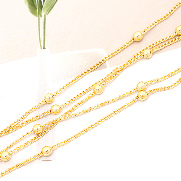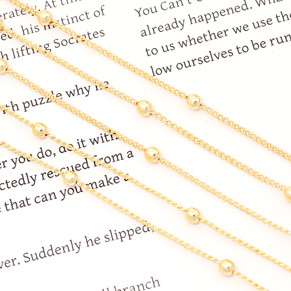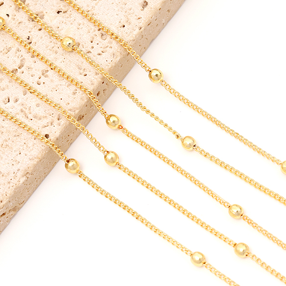 メタルチェーン メタルビーズ装飾キヘイチェーン ネックレスチェーン アクセサリーチェーン 色落ちしにくい 銅製 18Kゴールドメッキ(長さ1m)