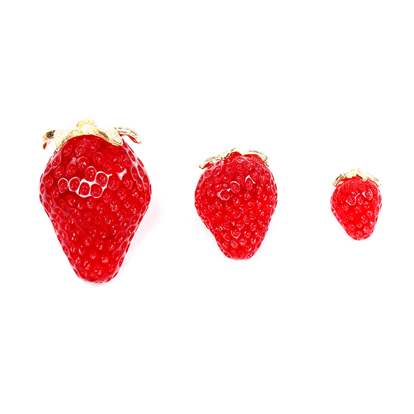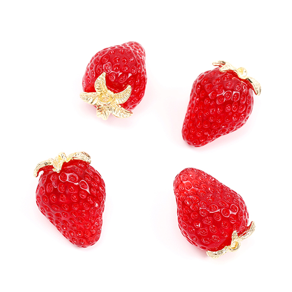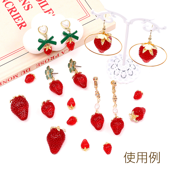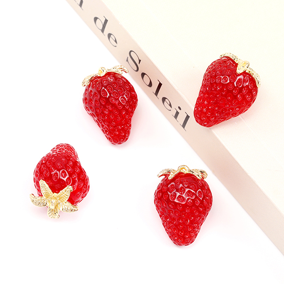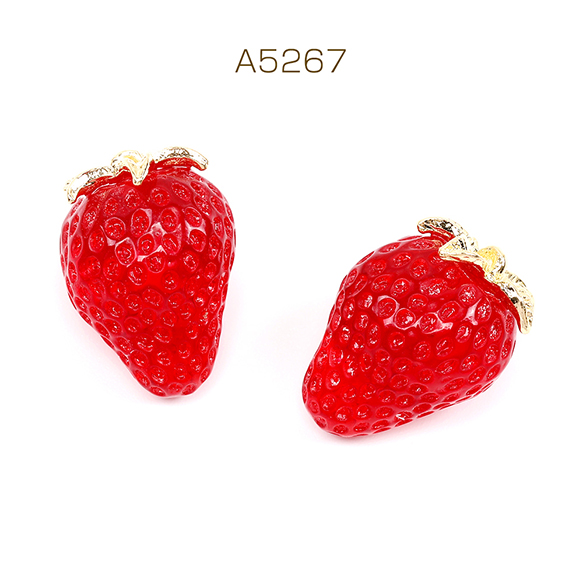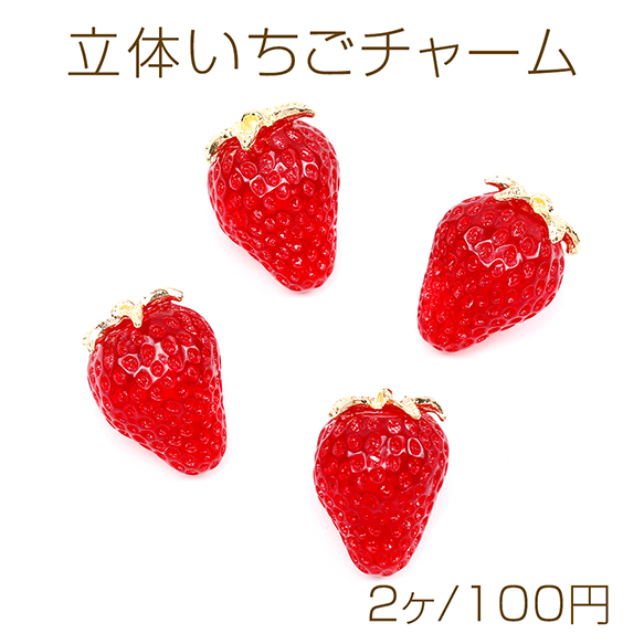 立体いちごチャーム イチゴパーツ 自社開発オリジナルいちごチャーム いちご本体樹脂製 ゴールドヘタ部分合金製 カン付き 13×18mm(2ヶ)