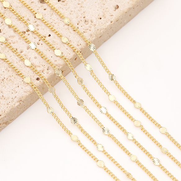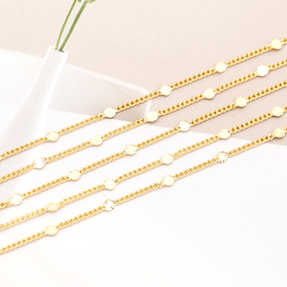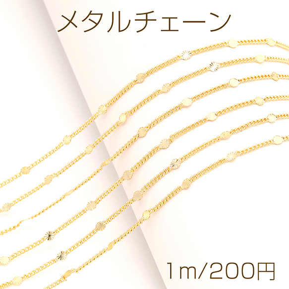 メタルチェーン メタルプレート付き キヘイチェーン アクセサリーチェーン 色落ちしにくい 18Kゴールドメッキ 銅製 (長さ1m)