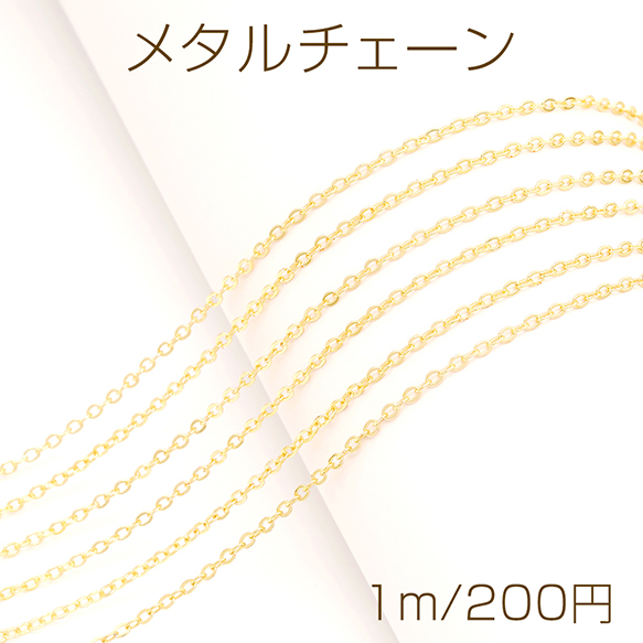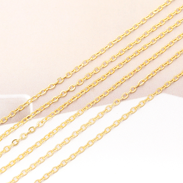 メタルチェーン アズキチェーン ネックレスチェーン アクセサリーチェーン 色落ちしにくい 18Kゴールドメッキ 銅製 (長さ1m)