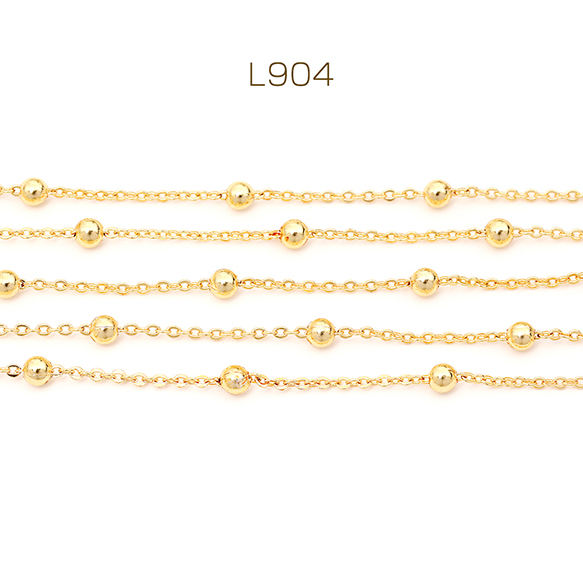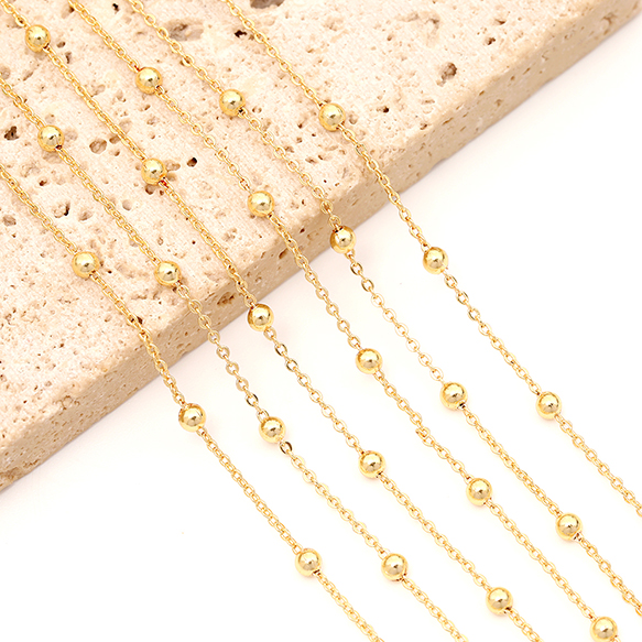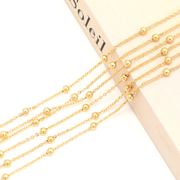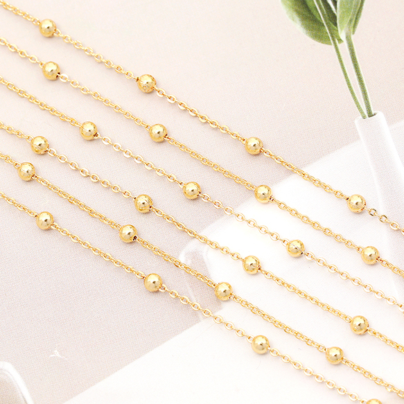 メタルチェーン 丸玉ビーズ付き アズキチェーン アクセサリーチェーン 色落ちしにくい 18Kゴールドメッキ 銅製 (長さ1m)