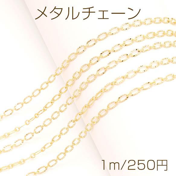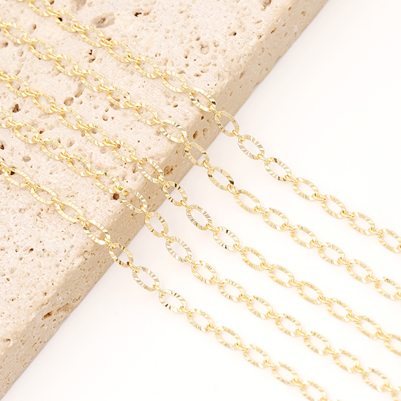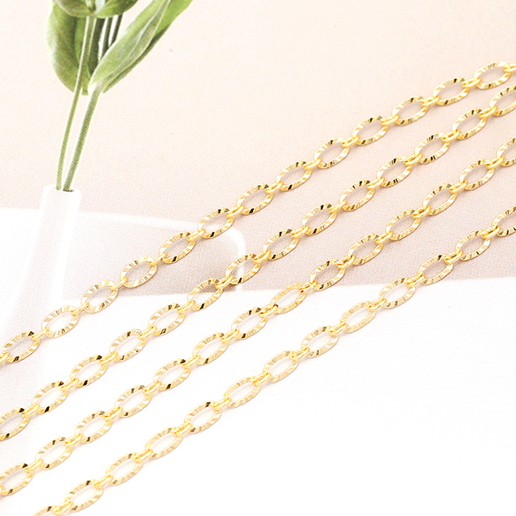 メタルチェーン デザイン小判チェーン ネックレスチェーン アクセサリーチェーン 色落ちしにくい 18Kゴールドメッキ 銅製 (長さ1m)