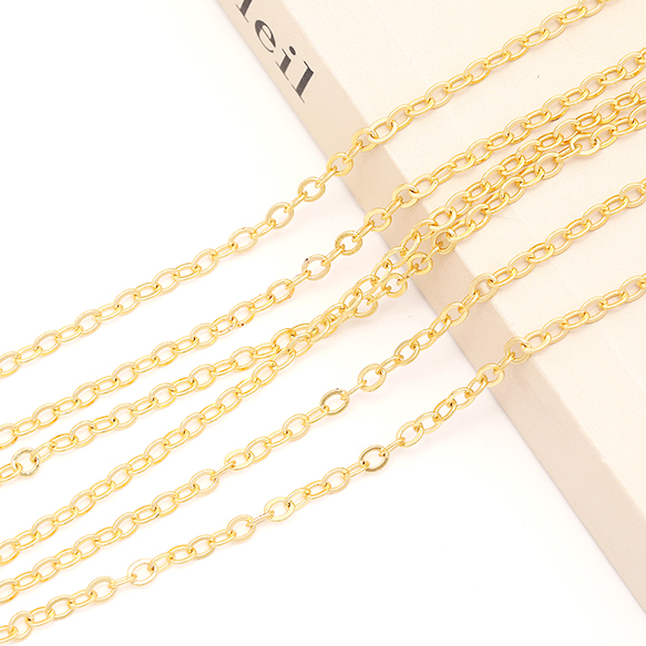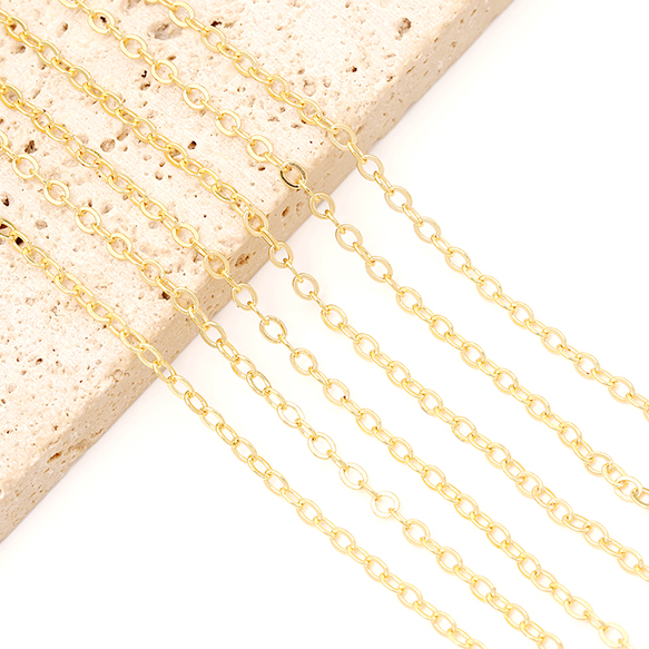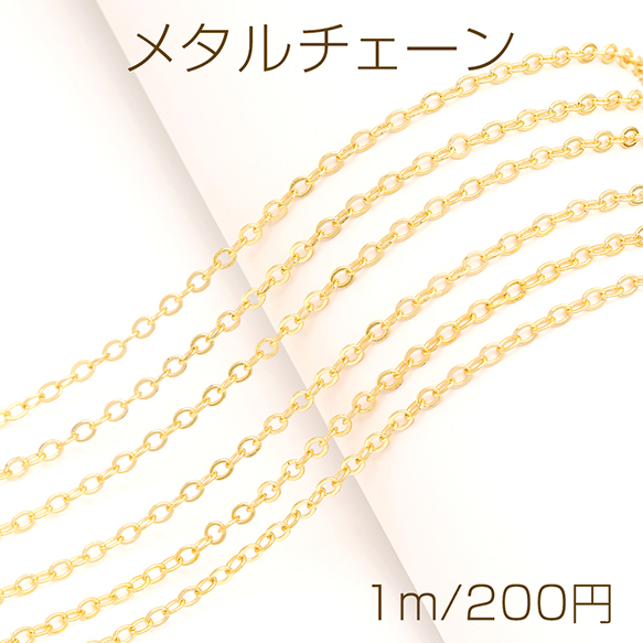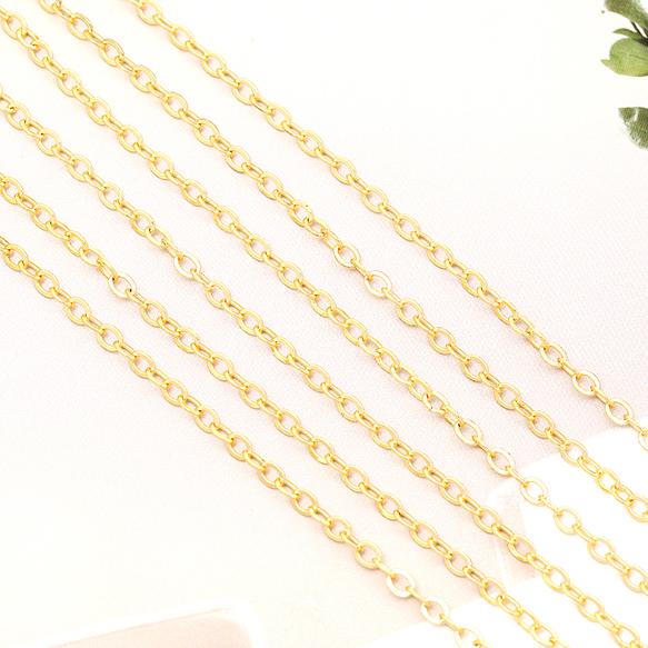 メタルチェーン デザインアズキチェーン ネックレスチェーン アクセサリーチェーン 色落ちしにくい 18Kゴールドメッキ 銅製 (長さ1m)