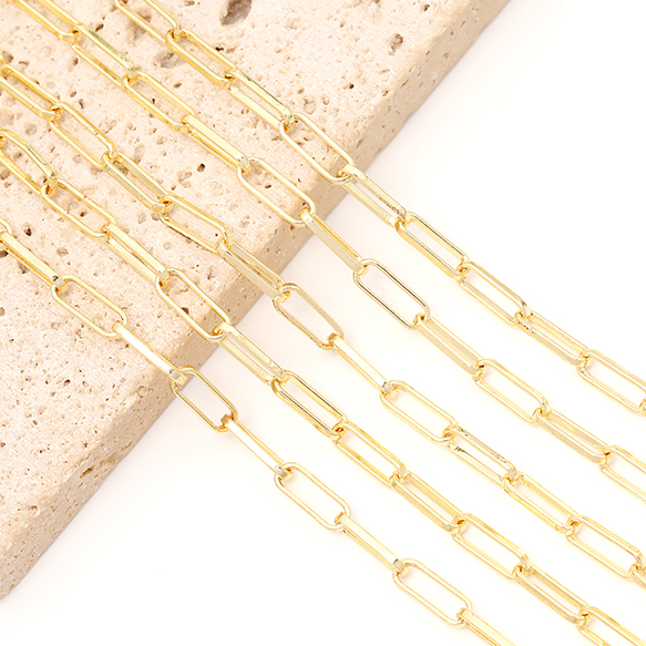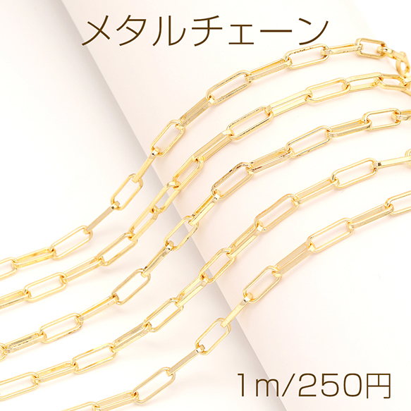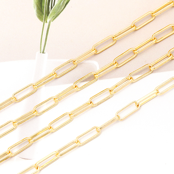 メタルチェーン ロング小判チェーン ネックレスチェーン アクセサリーチェーン 色落ちしにくい 18Kゴールドメッキ 銅製 (長さ1m)
