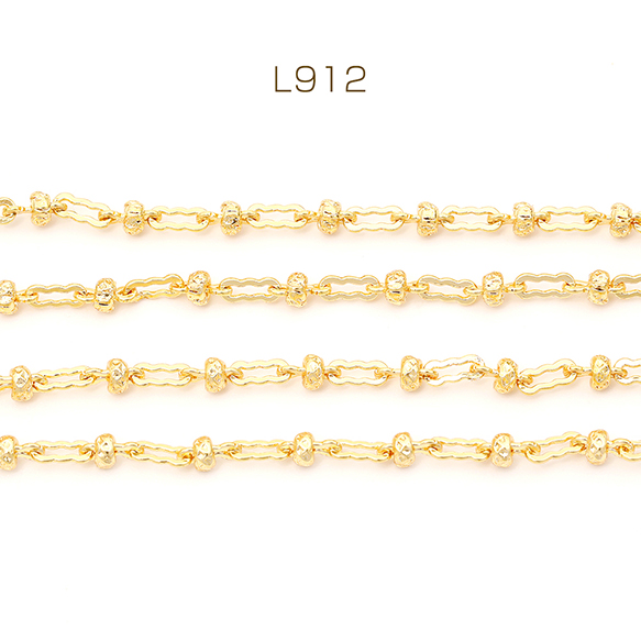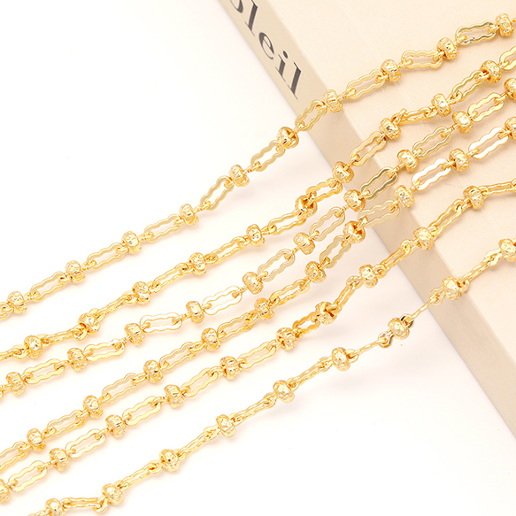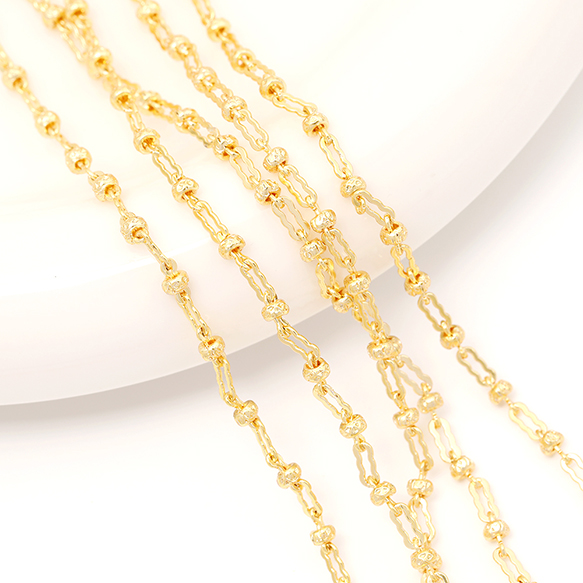 メタルチェーン メタルビーズ付き ロング小判チェーン アクセサリーチェーン 色落ちしにくい 18Kゴールドメッキ 銅製 (長さ1m)
