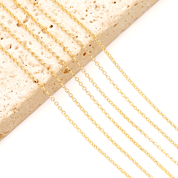メタルチェーン アズキチェーン ネックレスチェーン アクセサリーチェーン 色落ちしにくい 18Kゴールドメッキ 銅製 (長さ1m)