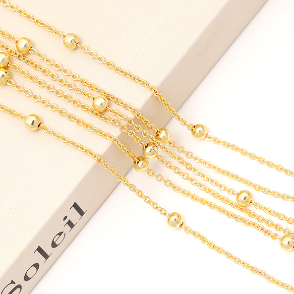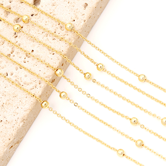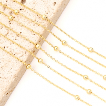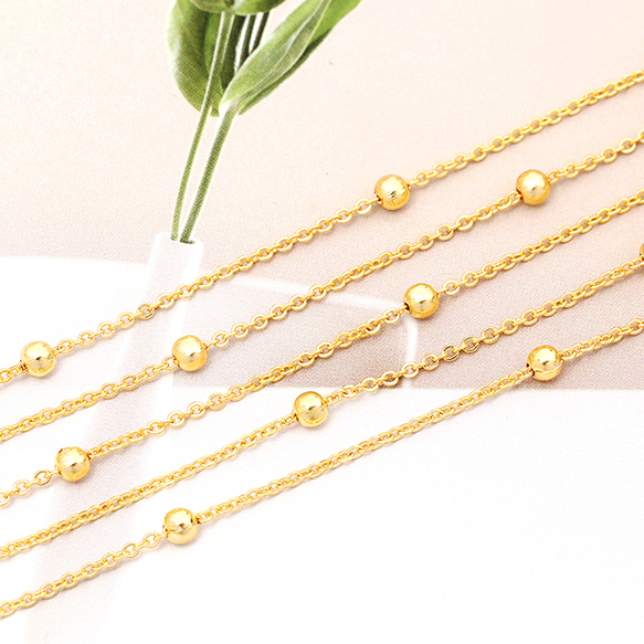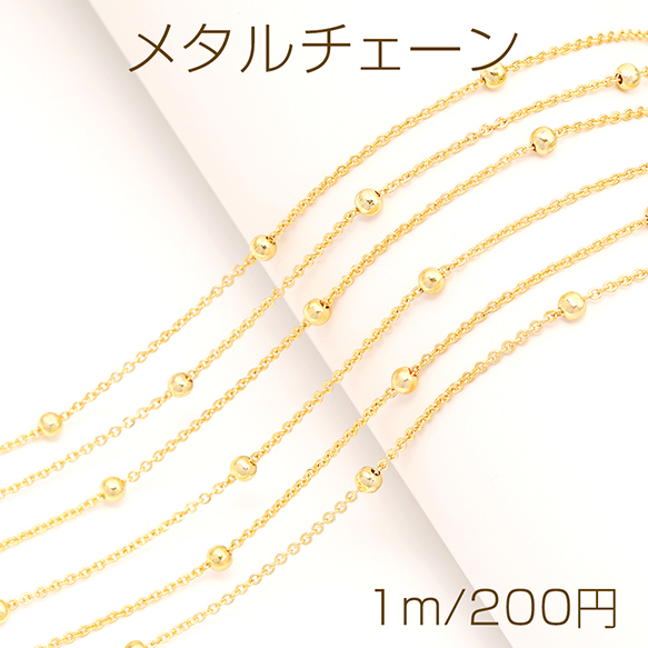 メタルチェーン ボールビーズ付き アズキチェーン ネックレスチェーン アクセサリーチェーン 色落ちしにくい 18Kゴールドメッキ 銅製 (長さ1m)