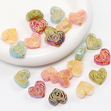 フラワービーズ クリアアクリルビーズ アンティーク調ビーズ 花模様入り オーロラ加工 パステルカラー 通し穴あり アソート 19mm(4ヶ)