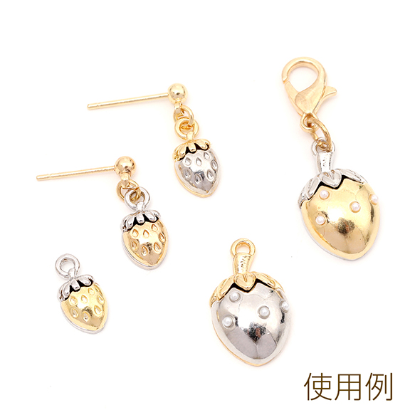 立体メタルチャーム メタルいちごチャーム いちごモチーフ ヘタあり 表面パール装飾 1カン付き 10×18mm