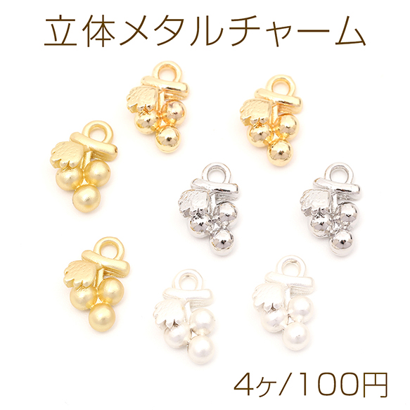 立体メタルチャーム メタル葡萄チャーム ブドウチャーム 1カン付き 7×11mm(4ヶ)