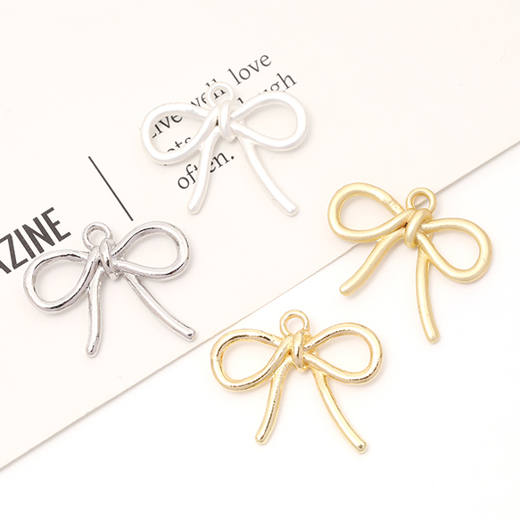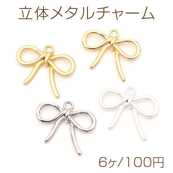立体メタルチャーム リボンモチーフ リボンチャーム 1カン付き 17×20mm(6ヶ)