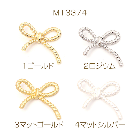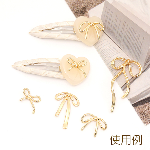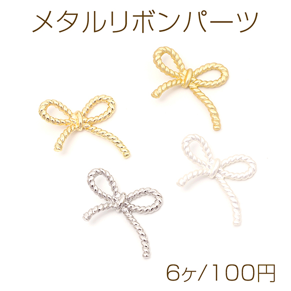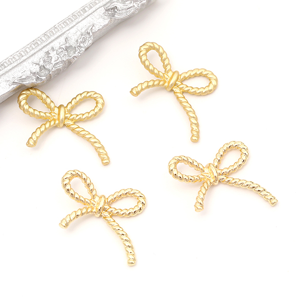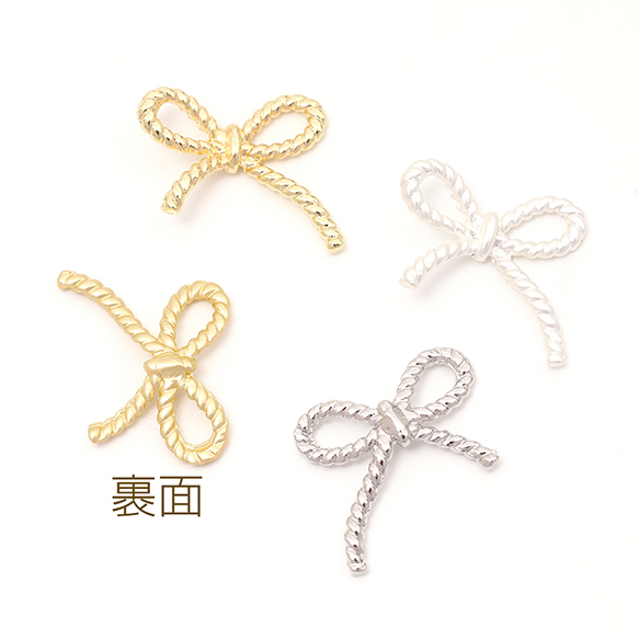 - メタルリボンパーツ 立体 リボンチャーム ネックレストペンダントトップ リボン型ジョイントパーツ ポニーフック用リボンパーツ 貼付け可 13×15mm(6ヶ)