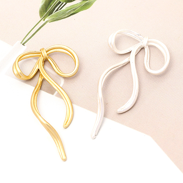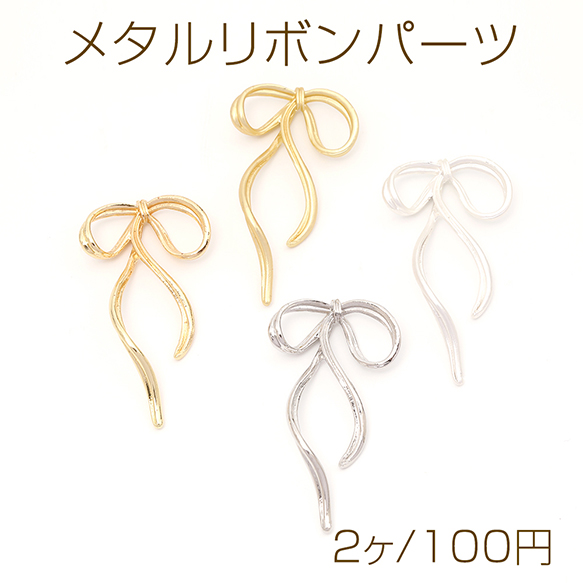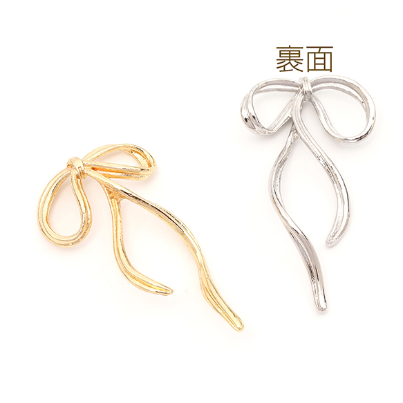 - メタルリボンパーツ 立体 リボンチャーム ネックレストペンダントトップ リボン型ジョイントパーツ ポニーフック用リボンパーツ 貼付け可 23×43mm(2ヶ)
