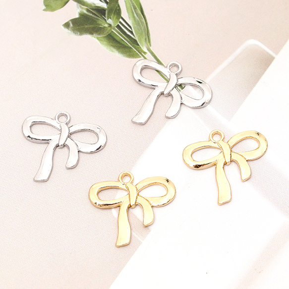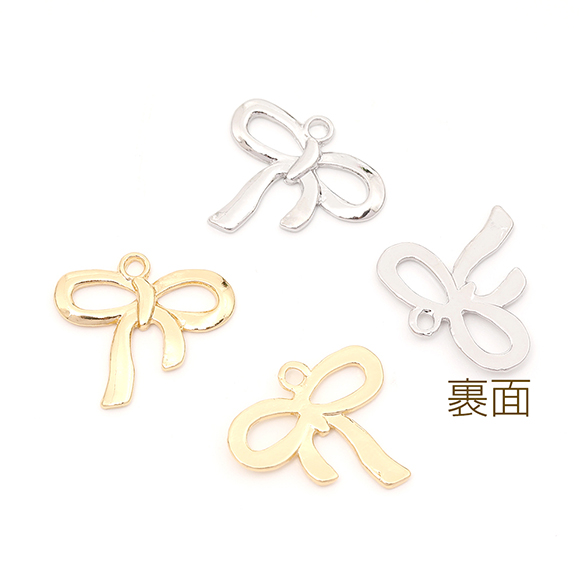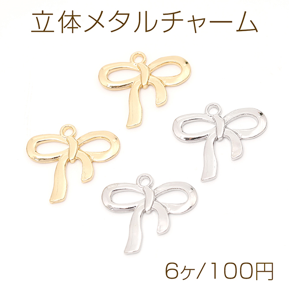 立体メタルチャーム リボンモチーフ メタルリボンチャーム デザインリボンチャーム 1カン付き 18×19mm (6ヶ)