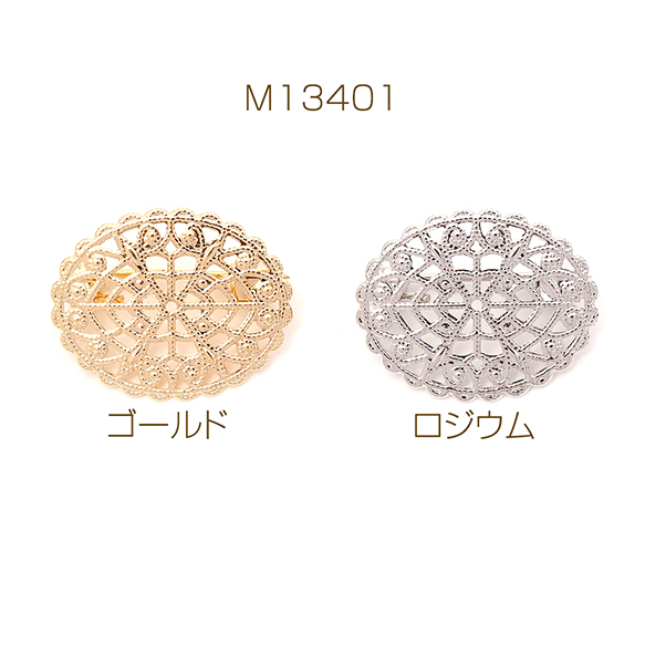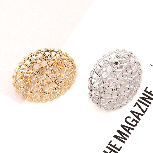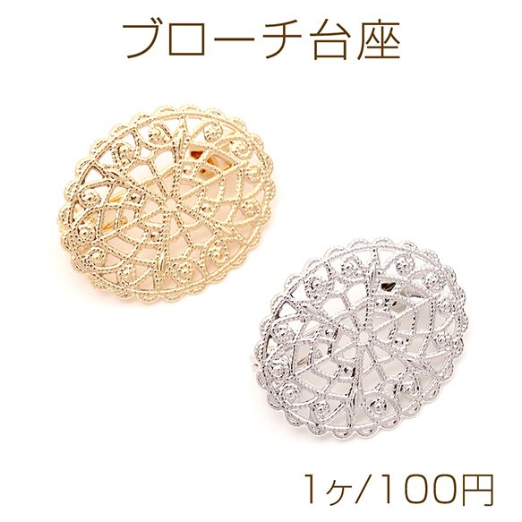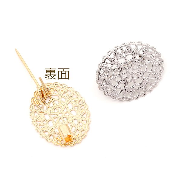 ブローチ台座 デザインブローチ台 透かし台 ブローチ金具 ブローチピン コサージュ金具 オーバル型 約17×21mm(1ヶ)