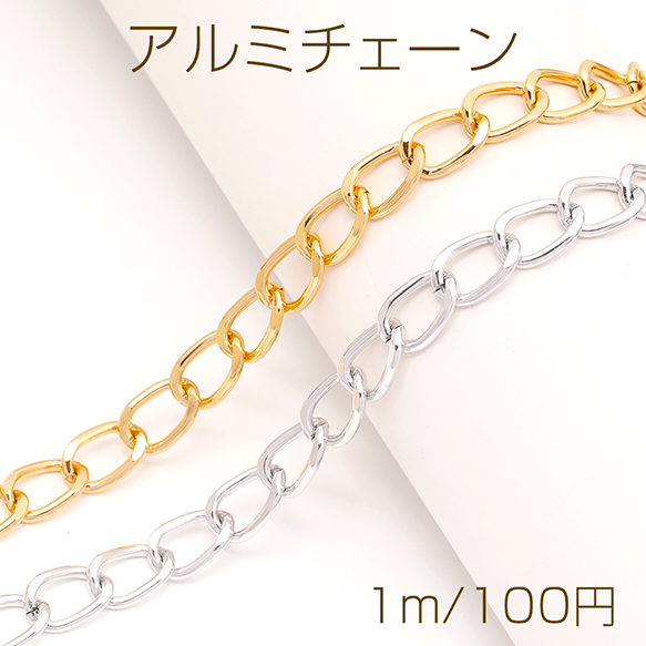 アルミチェーン アルミ製 軽量 キヘイチェーン ハンドメイドチェーン デザインチェーン 1コマ約8×12mm カット売り1m単位