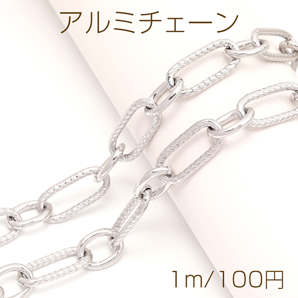 アルミチェーン アルミ製 軽量 フィガロチェーン ハンドメイドチェーン デザインチェーン 1コマ約11×25mm カット売り1m単位