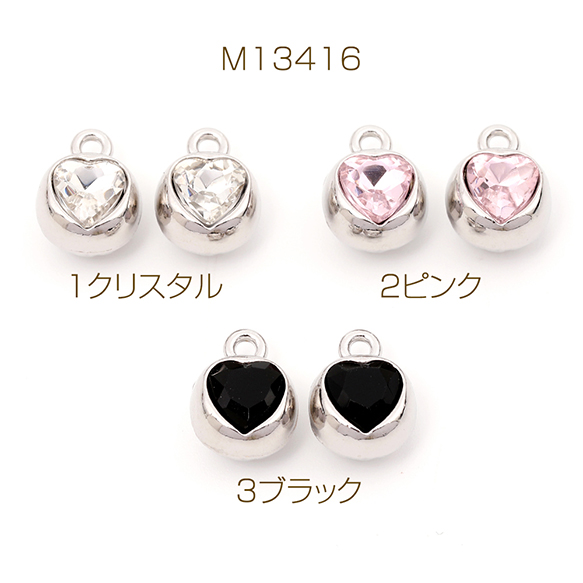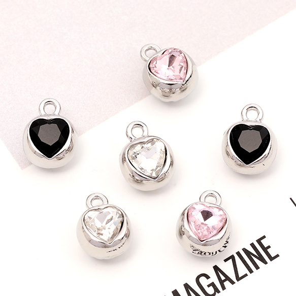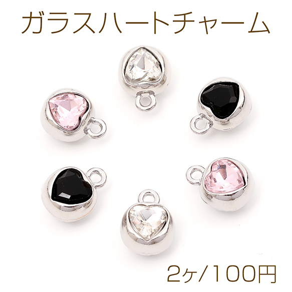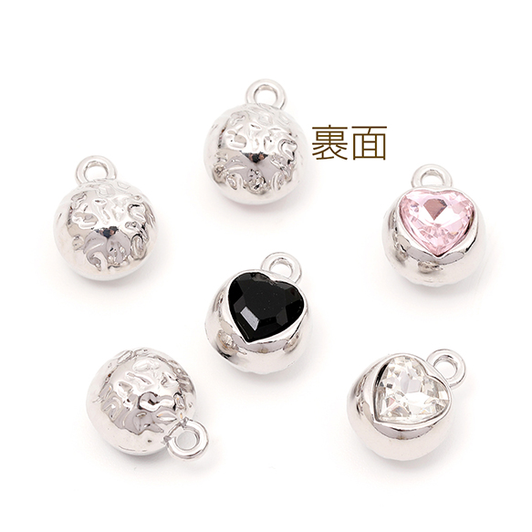 ガラスハートチャーム 合金製ボール台座 ガラスハート 立体ボール ハートモチーフ 1カン付き 約9×11mm(2ヶ)