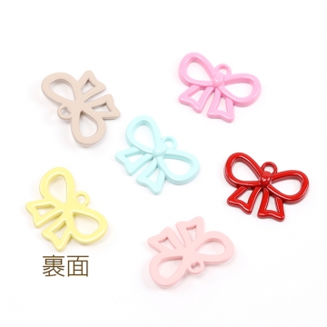 メタルリボンチャーム 合金製 塗装加工 リボンモチーフ リボンパーツ デザインリボンチャーム 1カン付き 11×16mm(4ヶ)