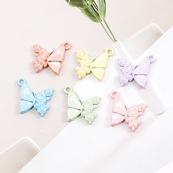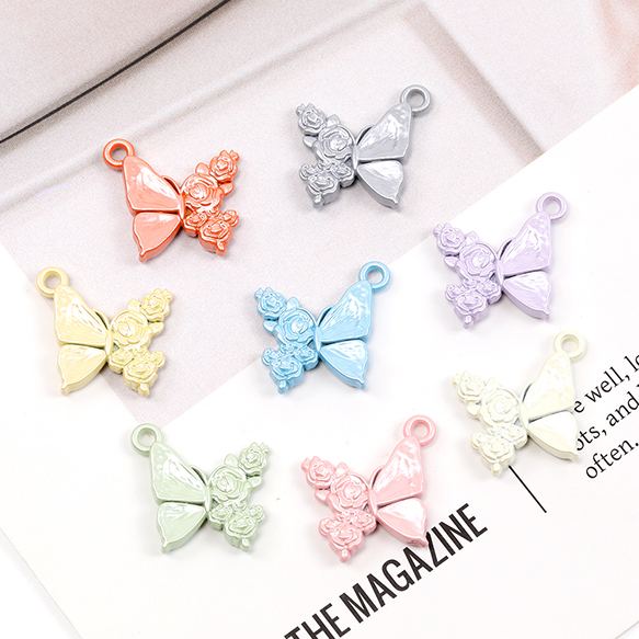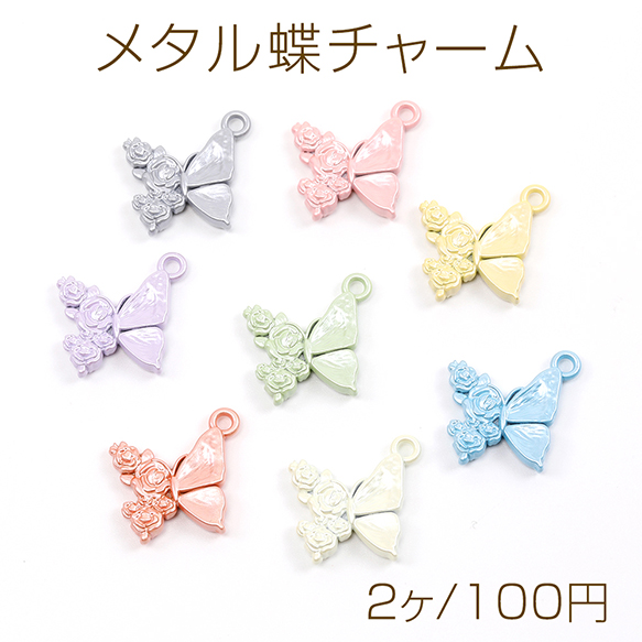 メタル蝶チャーム 合金製 塗装加工 蝶モチーフ 蝶パーツ デザイン蝶チャーム 1カン付き 19×21mm(2ヶ)