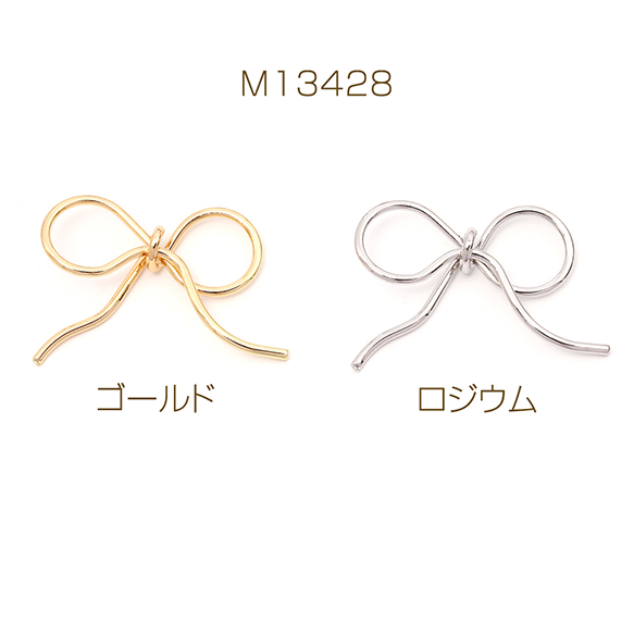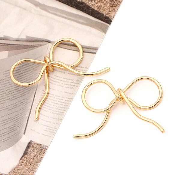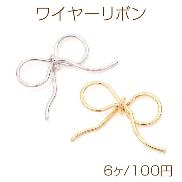 ワイヤーリボン 金属リボンパーツ リボンモチーフ ネックレストップパーツ バックチャーム ポニーフック 貼付け可 約27×38mm(6ヶ)
