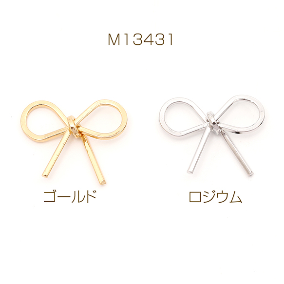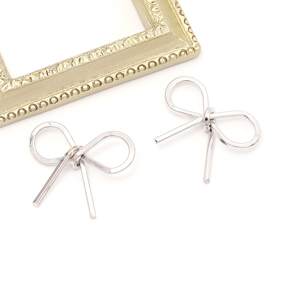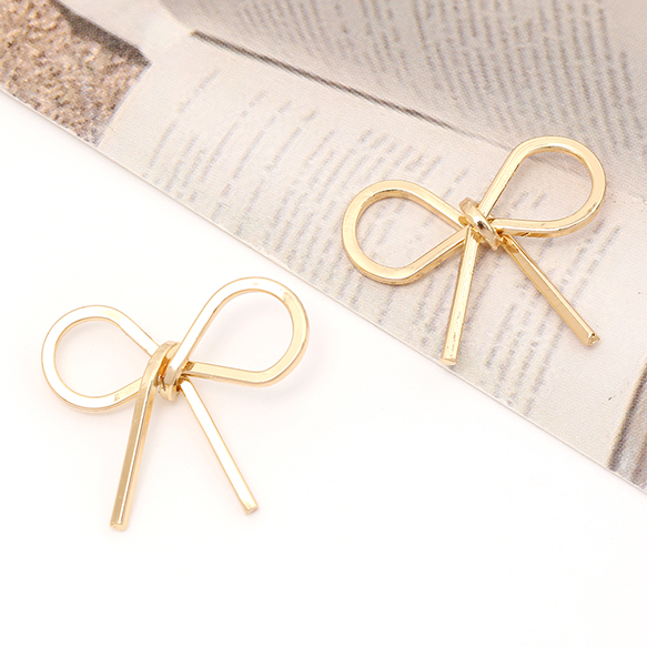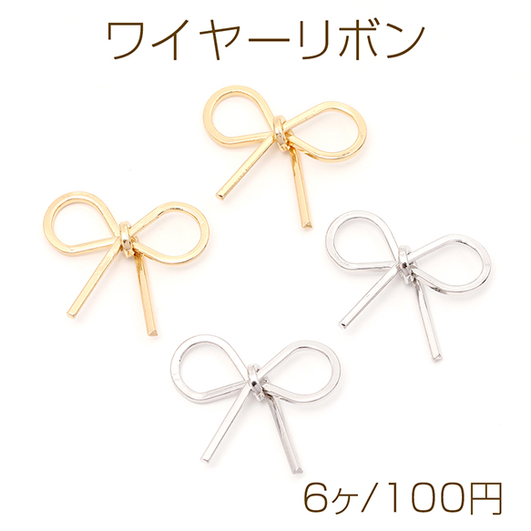 ワイヤーリボン 金属リボンパーツ リボンモチーフ ネックレストップパーツ バックチャーム ポニーフック 貼付け可 約17×20mm(6ヶ)