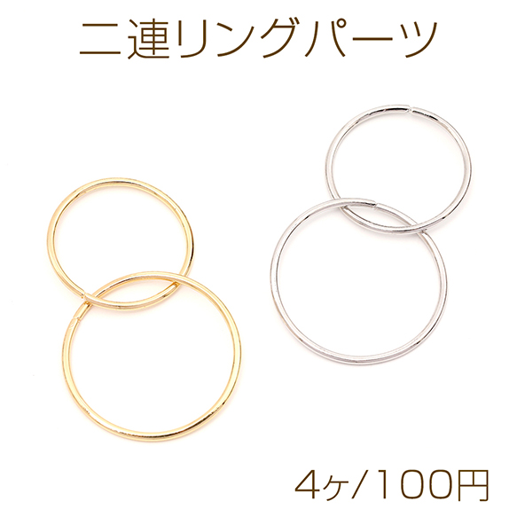 二連リングパーツ 2連フープパーツ ダブルフープパーツ チェーンパーツ コネクター ジョイントパーツ 約25×43mm(4ヶ)