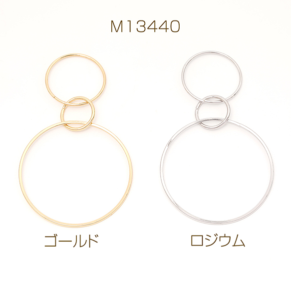 三連リングパーツ 3連フープパーツ メタルフープパーツ チェーンパーツ コネクター ジョイントパーツ 約46×82mm(4ヶ)