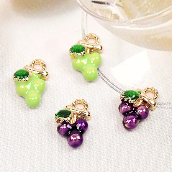 エポチャーム エポ葡萄チャーム メタルブドウチャーム 立体チャーム フルーツチャーム 1カン付き 約7×11mm (4ヶ)
