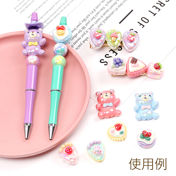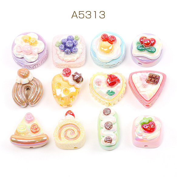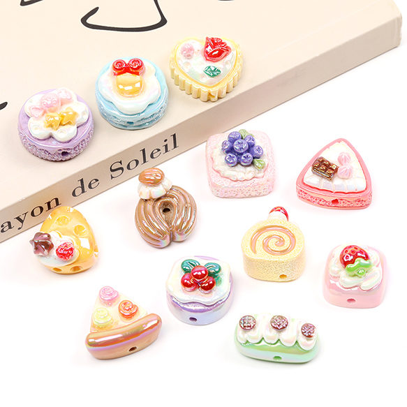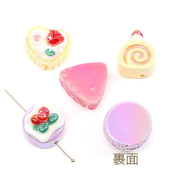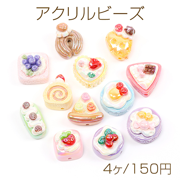 アクリルビーズ 貼付け両用 ショートケーキ ロールケーキモチーフ スイーツビーズ 穴ありアソート 約18×24mm