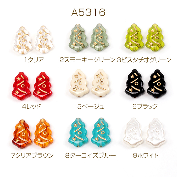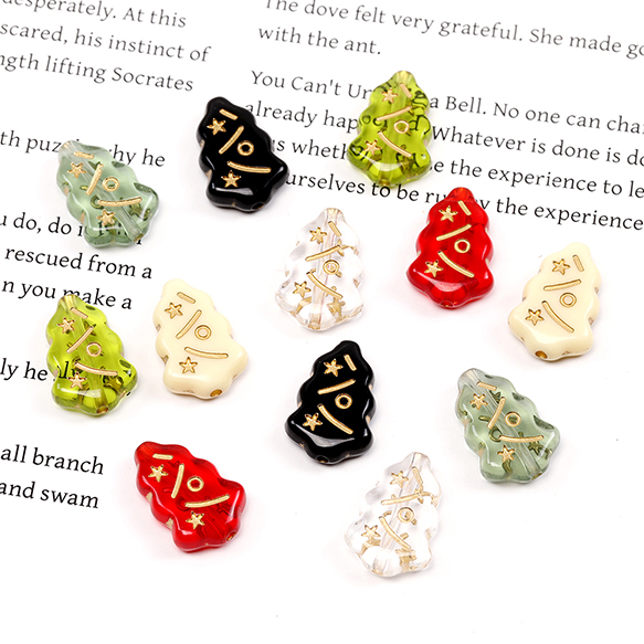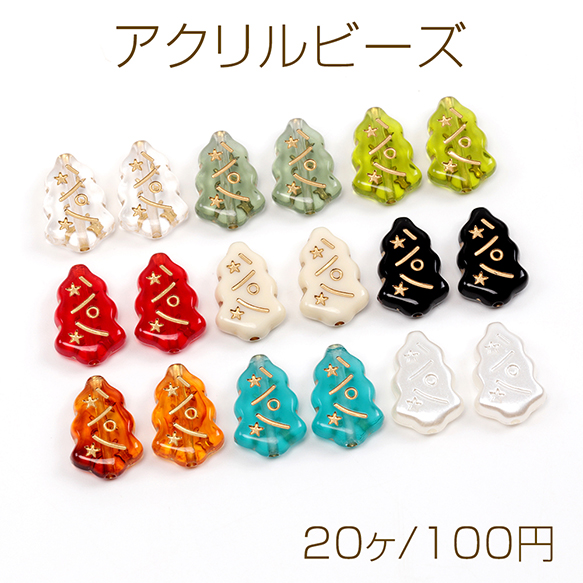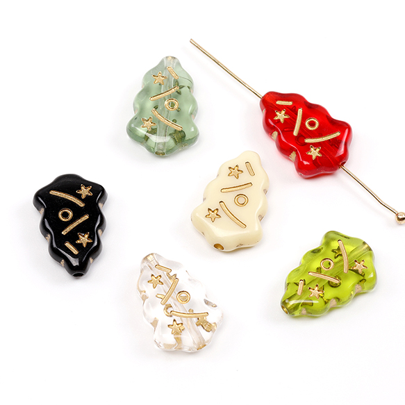 アクリルビーズ クリスマスツリーモチーフ アンティーク調ビーズ ヴィンテージ風ビーズ 縦穴 約11×17mm (20ヶ)