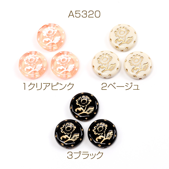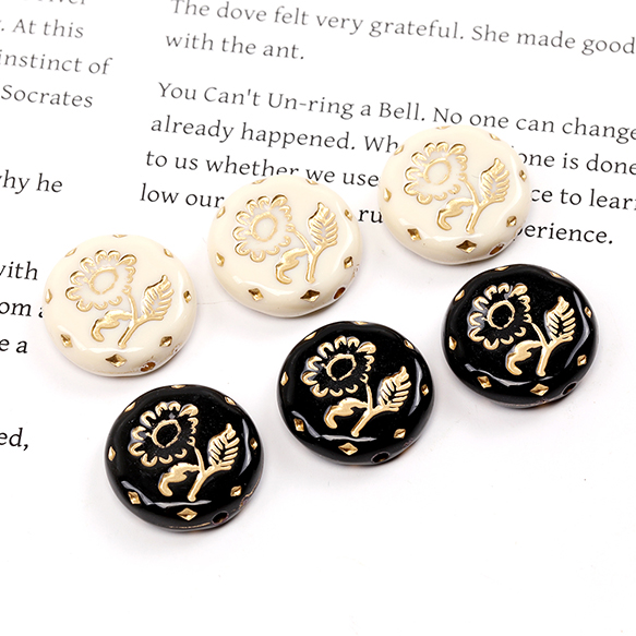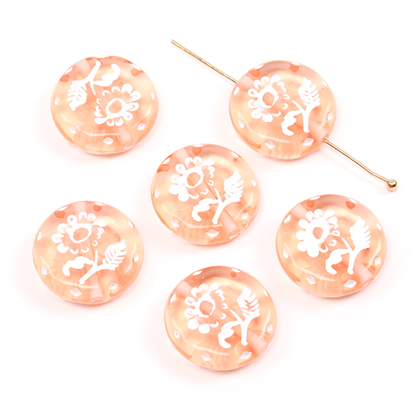 アクリルビーズ コイン型 フラワー模様入り アンティーク調ビーズ 縦穴 約18mm(20ヶ)