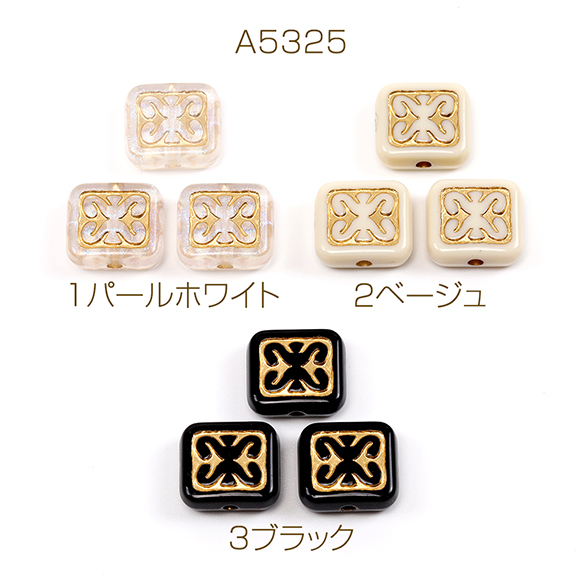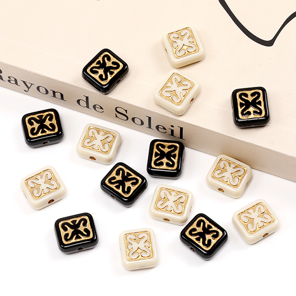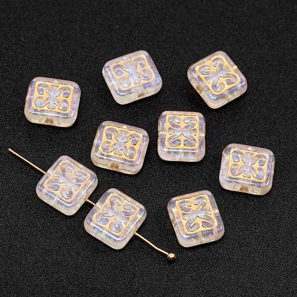 アクリルビーズ スクエア型ビーズ アンティーク調ビーズ スクエアモチーフ 通し穴あり 約11×12mm(20ヶ)