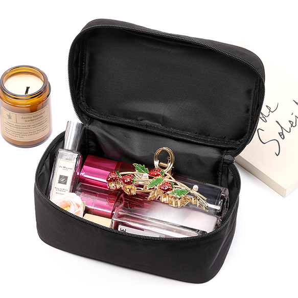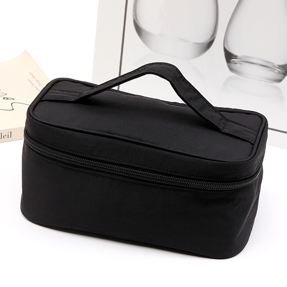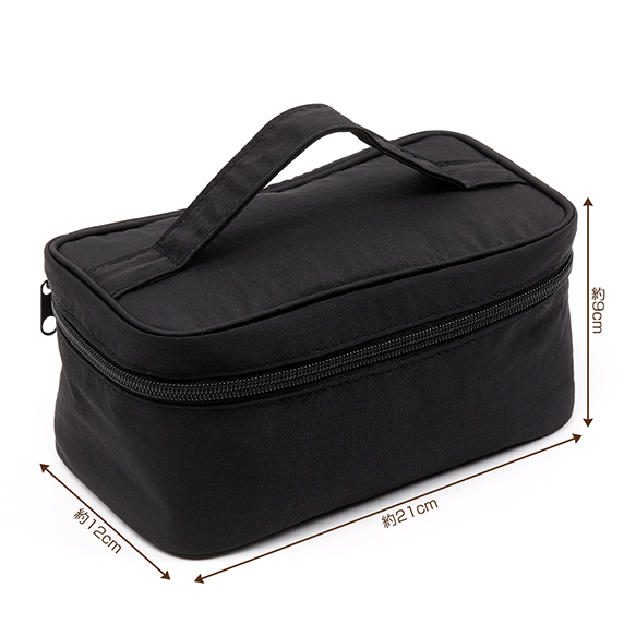 収納ポーチ コスメバッグ トートバッグ ハンドバッグ ファスナータイプ ブラック 約9×12×21cm(1ヶ)