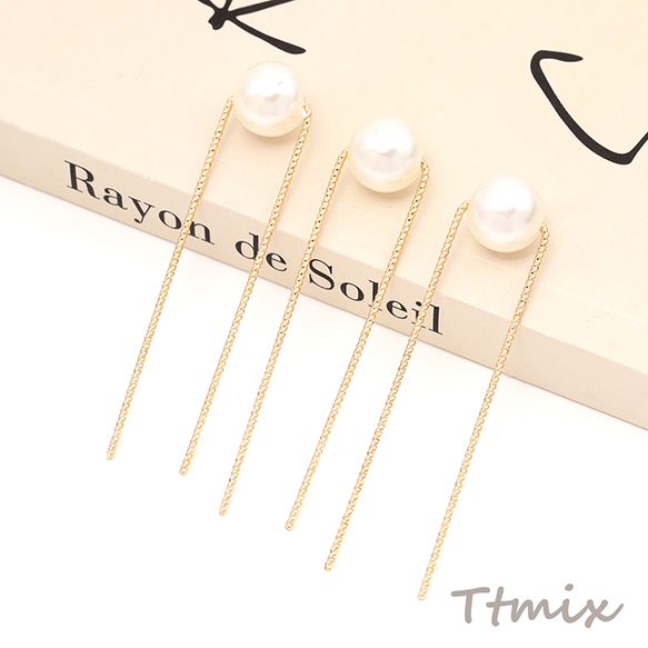 かんざし パール付き U字 2本足かんざし 簪 ヘアスティック ゴールド 本体長さ6.5cm 線径1.1mm(50ヶ)