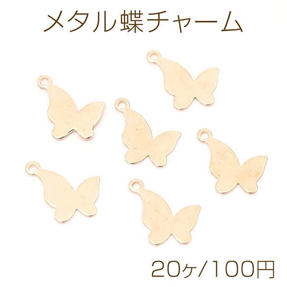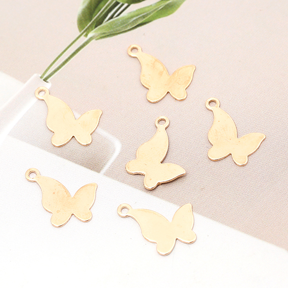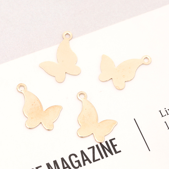 メタル蝶チャーム 金属蝶チャーム 蝶型プレート バタフライ 蝶モチーフ 鉄製 1カン付き ゴールド 約11×15mm(20ヶ)