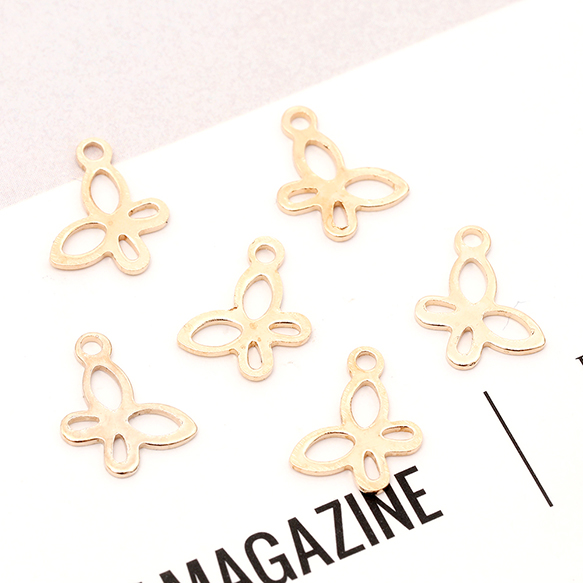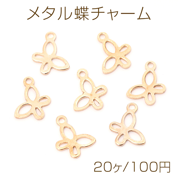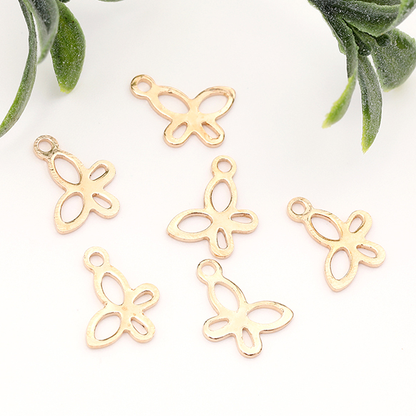 メタル蝶チャーム 金属蝶チャーム 蝶型フレーム バタフライ 蝶モチーフ 鉄製 1カン付き ゴールド 約8×11mm(20ヶ)