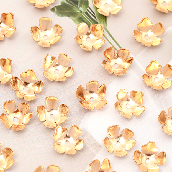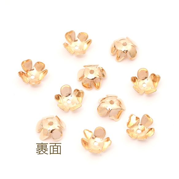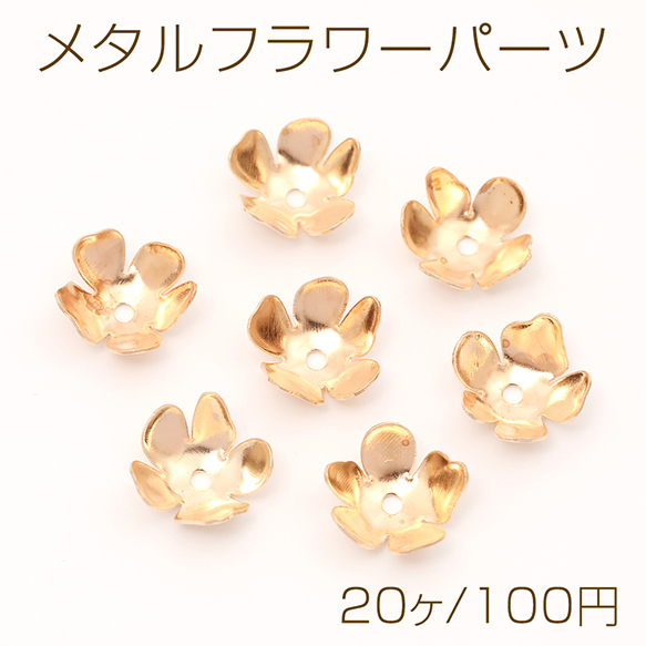 メタルフラワーパーツ 五弁花 ビーズキャップ 花座 座金 鉄製 中心通し穴あり ゴールド 約11mm(20ヶ)