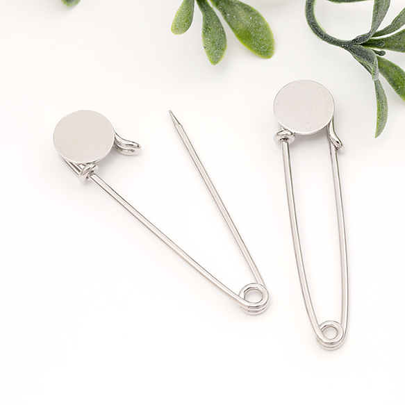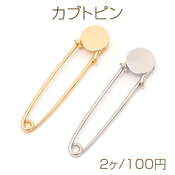 カブトピン カブトピンブローチ金具 平皿付き 約13×57mm 平皿約12mm(2ヶ)