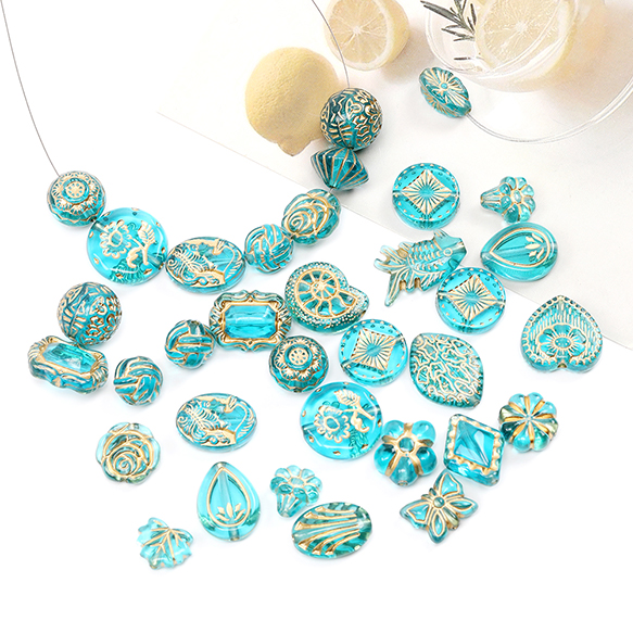 アクリルビーズ アンティーク調ビーズ 通し穴あり アソート ブルー(15g)