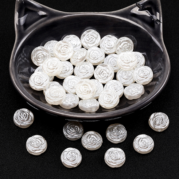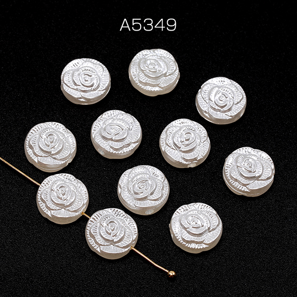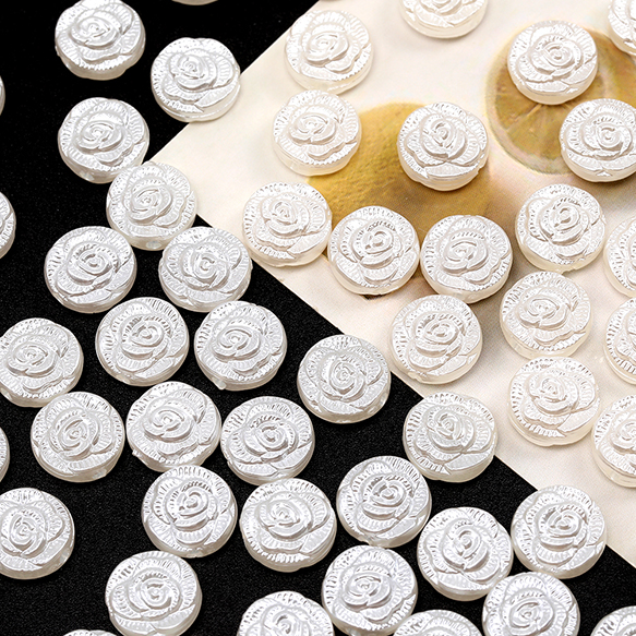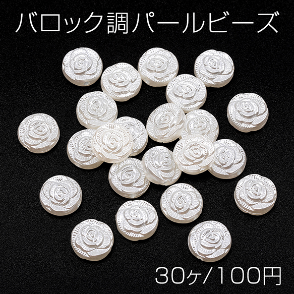 バロック調パールビーズ アクリル製 コイン型 フラワー模様入り 通し穴あり 約11mm(30ヶ)