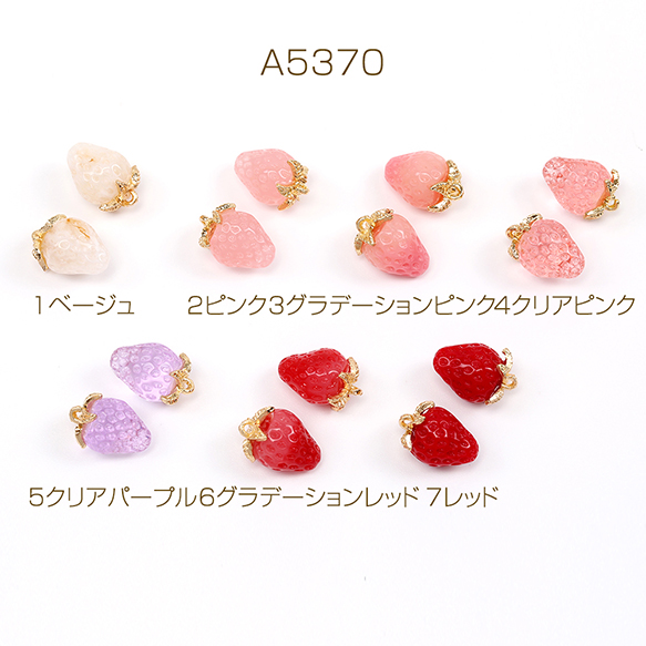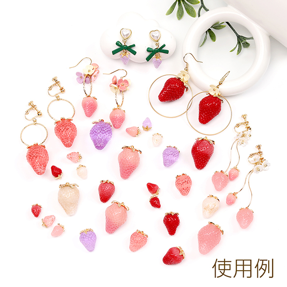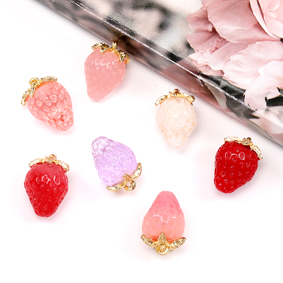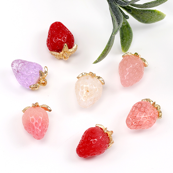 立体いちごチャーム イチゴパーツ いちご本体樹脂製 ゴールドヘタ部分合金製 カン付き 約8×12mm(4ヶ)