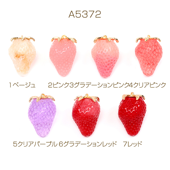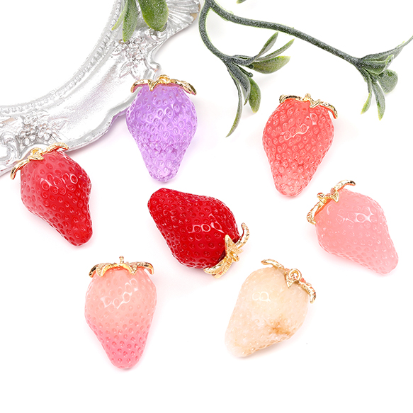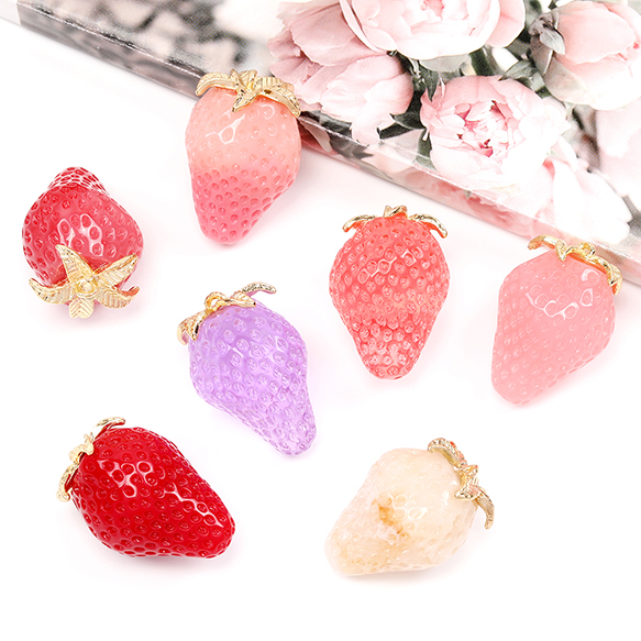 立体いちごチャーム イチゴパーツ いちご本体樹脂製 ゴールドヘタ部分合金製 カン付き 約18×26mm(2ヶ)