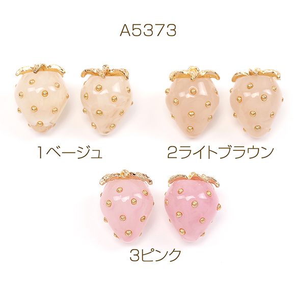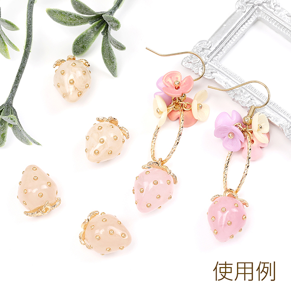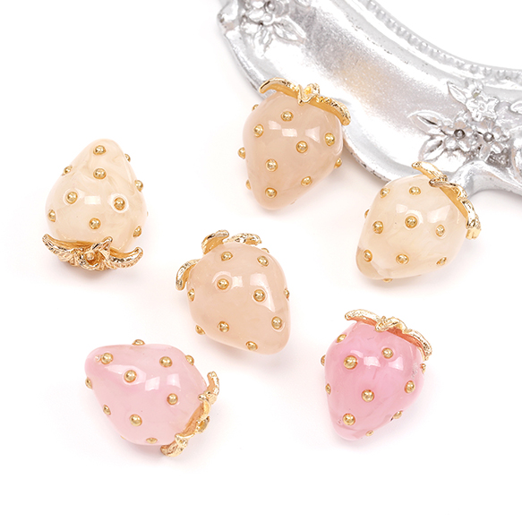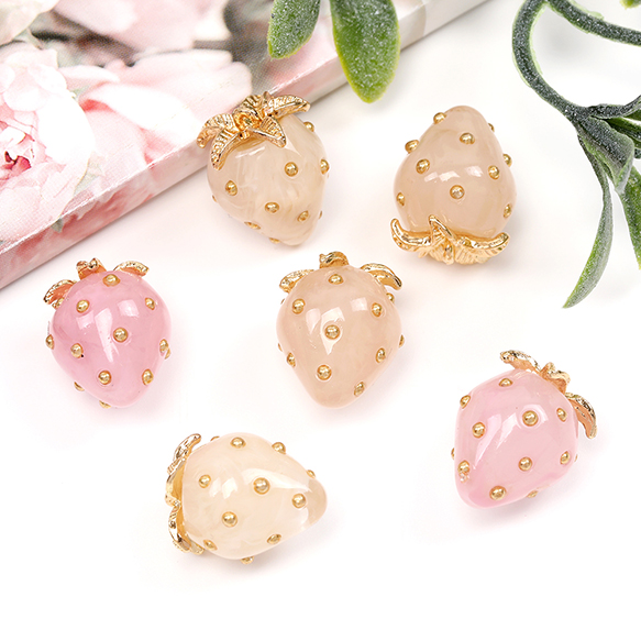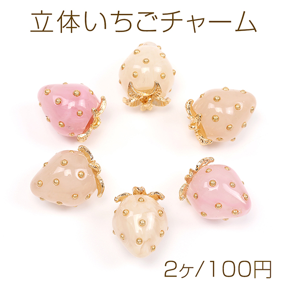 立体いちごチャーム イチゴパーツ いちご本体樹脂製 ゴールドヘタ部分合金製 表面パール装飾 カン付き 約12×16mm(2ヶ)
