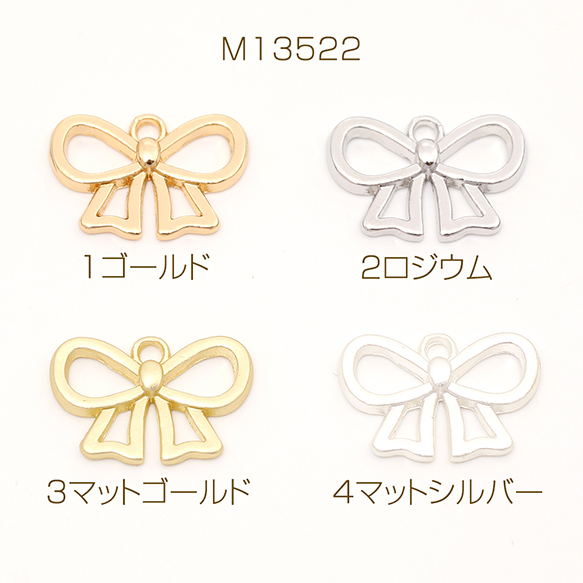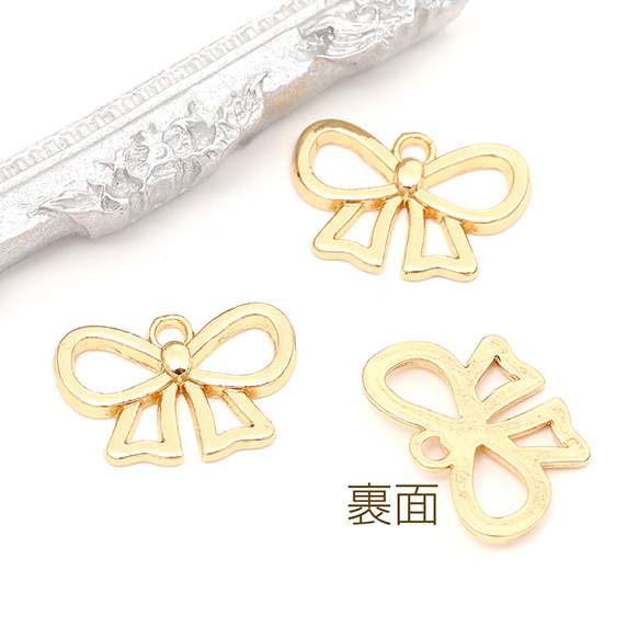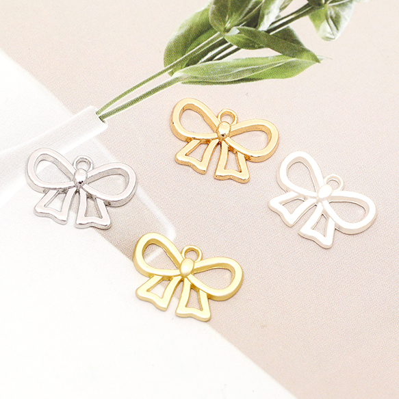 立体メタルチャーム メタルリボンチャーム メタルりぼんチャーム 立体リボンチャーム 1カン付き 約10×15mm(6ヶ)