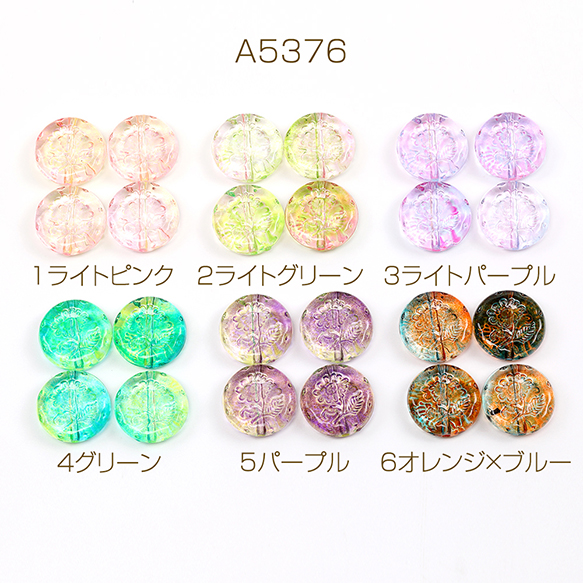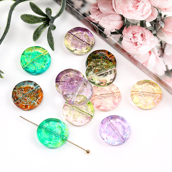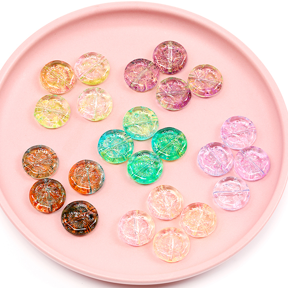 アクリルビーズ コイン型 フラワー模様入り 通し穴あり グラデーションカラー 約18mm(20ヶ)