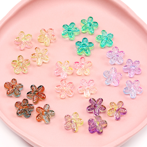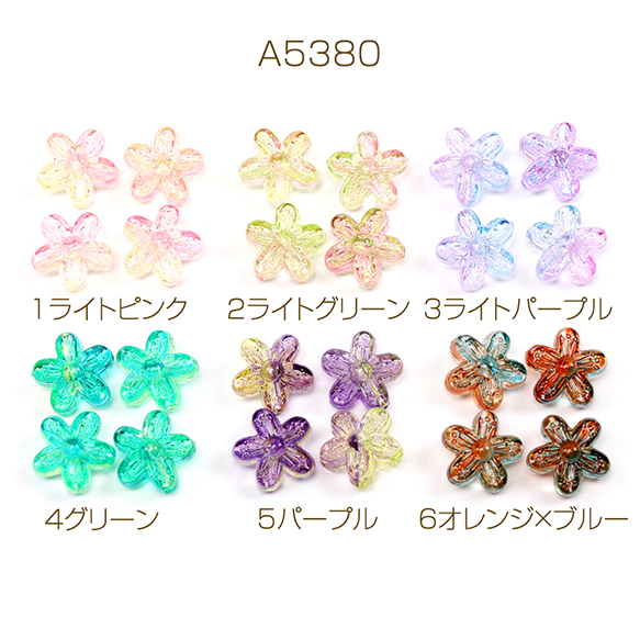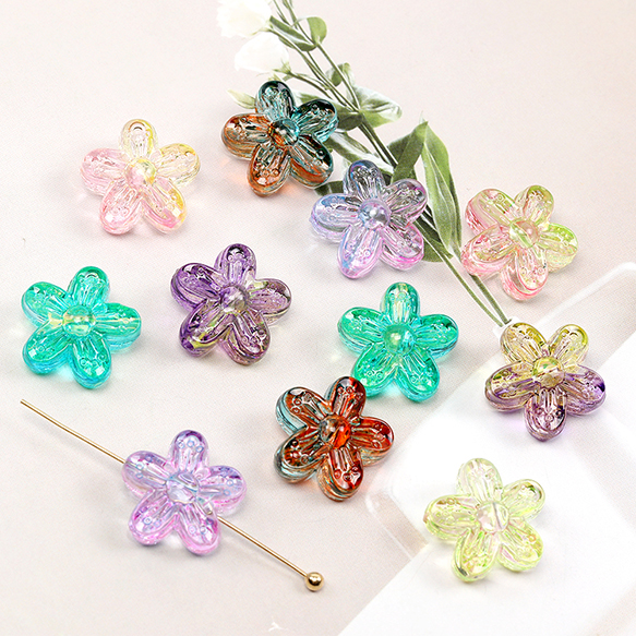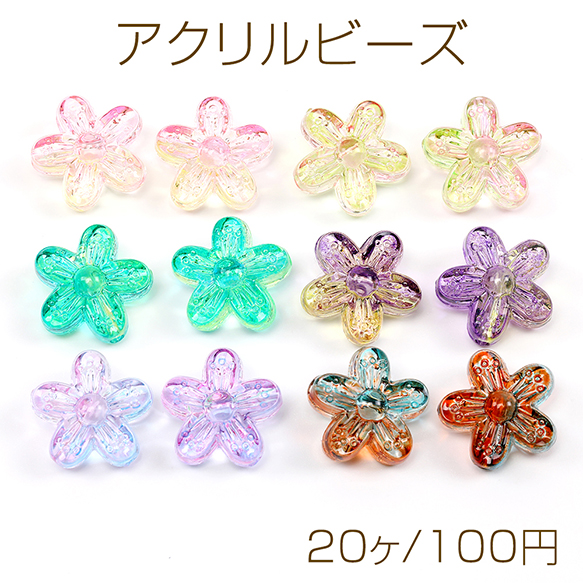 アクリルビーズ フラワービーズ 五弁花 通し穴あり グラデーションカラー 約15mm(20ヶ)