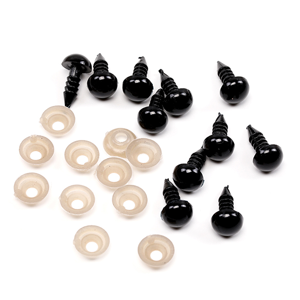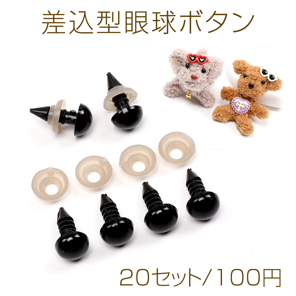 差込型眼球ボタン アクリル製 アニマルアイパーツ ぬいぐるみ目玉 差し込み目玉 黒 ブラック 約8mm(20セット)