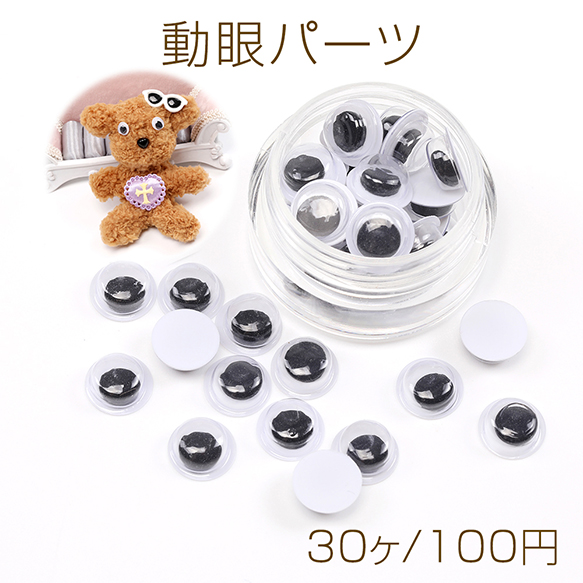 動眼パーツ アクリル製 アニマルアイパーツ ぬいぐるみ目玉 ムービングアイ 貼りつけタイプ 黒 ブラック 約8mm(30ヶ)